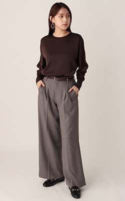 袖にタックを入れてトレンドのボリューム袖にしており、着るだけで旬なスタイリングが完成。