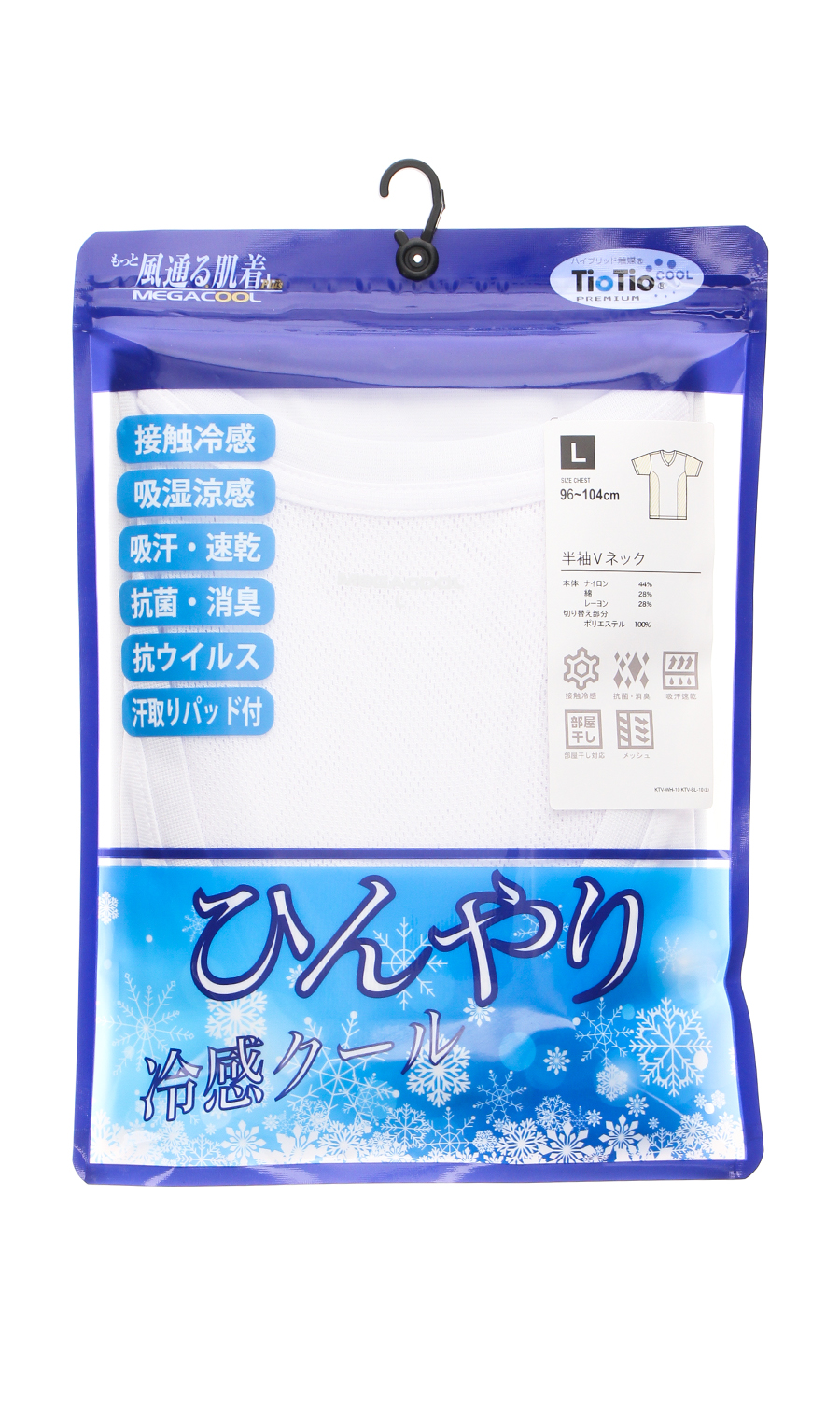 冷感クールひんやり爽やかな快適Vネックインナーです。軽くてソフトなふくらみ感にあふれる素材は、優れた吸汗速乾性を持ち水分を含んでもサラサラとしたドライ感で快適さを継続させます。接触冷感・抗菌消臭と汗かきシーズンに最適な機能を備えます。脇・肩周り・袖部分は特殊なメッシュ素材を使用し、通気性を向上。身頃部分には綿混素材を使用し、着心地と涼しさを兼ね備えた夏用肌着です。