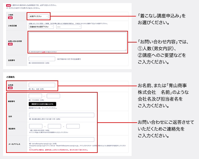 下記ボタンよりお問い合わせフォームにて「ご用件・お問い合わせ内容・ご連絡先」を記載の上、お申し込みください。