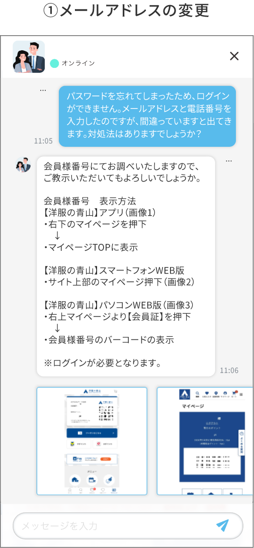 時間をおいてお戻りいただきますようお願いします。 - ・チャット内容によってメールでのご案内に切り替えさせていただく場合がございます。