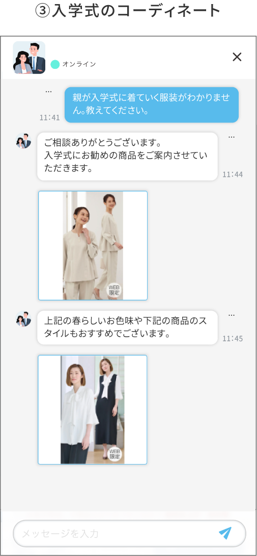 - ・本サービスはあくまでもオンラインストアの商品に関することですので、店舗のリアルタイム在庫はお答え出来かねます。