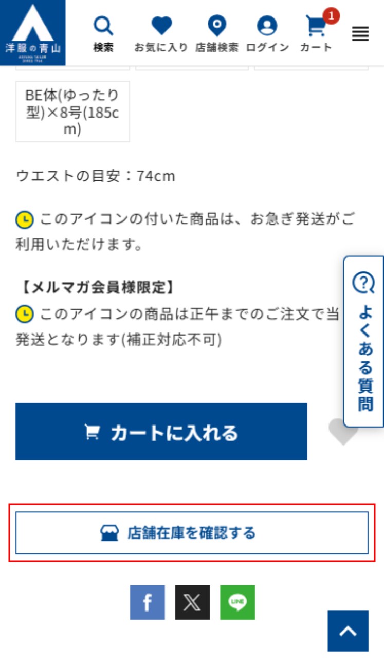 気になる商品ページで、「店舗在庫を確認する」ボタンをクリックします。