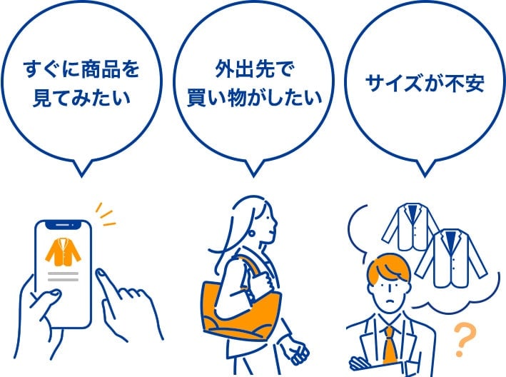 ご来店して実際の商品を見たり、ご試着した後に、安心してご購入いただけます。