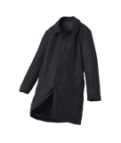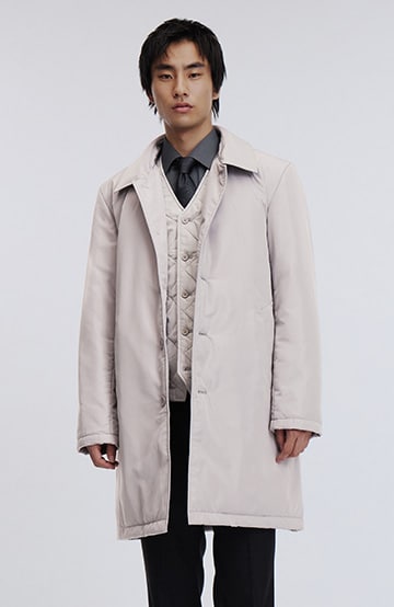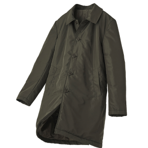 A 2-way long coat that changes its look depending on whether the collar is attached or detached.