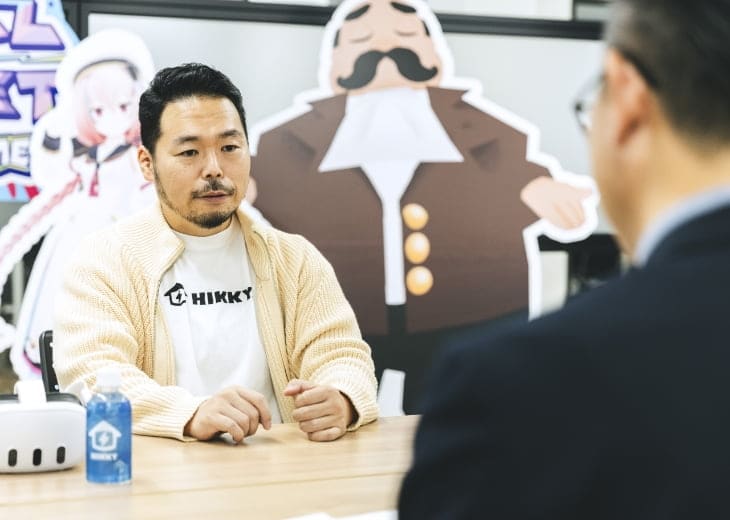 まだ“メタバース”という言葉も一般的ではない時にHIKKYを設立した理由は、人の創造性をかき立てるような体験を味わえる、新しい価値観が生まれるようなモノを創り出したい。そして、それを創る人たちがもっともっと活躍できる環境を作りたいという想いからです。会社名の“HIKKY(ヒッキー)”、これはご想像の通り“ひきこもり”というキーワードに由来します。でも、ひきこもっていてもアイデアが豊富で高レベルな技術や表現力で認められるクリエイターたちがいます。社会的にはネガティブに捉えられる言葉ですが、近年はそういう仲間たちの活躍が国内外のデジタル領域で正当に評価されるようになってきました。AIが出てきたこともありますが、今まで何十人の手で作っていた映像をひとりで制作出来たりと、ひとりのパフォーマンスが企業を上回り始めているんです。