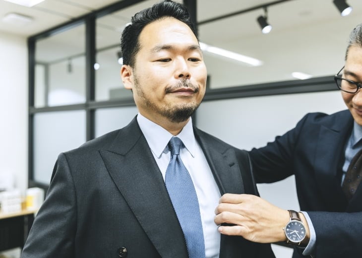 「心地良さ」というのは、人が無意識に感じる部分の積み重ねが大きく、そのトータル的なものだと思っているんです。だから、採寸時のヒアリングで肩パットが入らない型で、肩幅に合わせて細かく見て作っていただいたからこその、心地良さだと感じました。