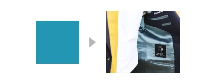【コーポレートカラー:フューチャーブルー】と【裏地イメージ】