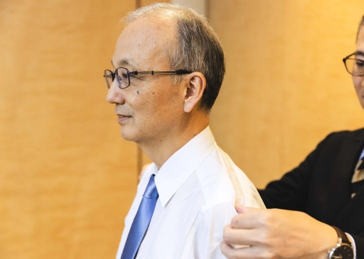 私自身、仕事ではスーツにネクタイ姿が基本。気持ちを引き締める意味合いもあるので、私にとってスーツは必要不可欠なアイテムです。今持っているスーツは全てオーダースーツです。オーダースーツは身体へのフィット感が良いのはもちろん、自分のこだわりや好みを反映させることができます。私自身は奇抜なデザインよりも、控えめながらも少しアクセントがあるものが好みです。ネクタイはその日の気分によって選びます。例えば、赤いネクタイは元気を与えてくれるというように、何を選ぶかが気分のバロメーターとなり、日々の楽しみにもなっています。年間を通じてネクタイを着けているのは、実は体調管理が目的でもあります。夏場に冷房が効いたオフィスにいると身体が冷えてしまいますが、ネクタイを締め、体温を一定に保つことを心がけています。