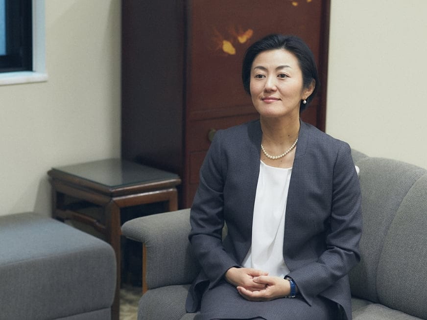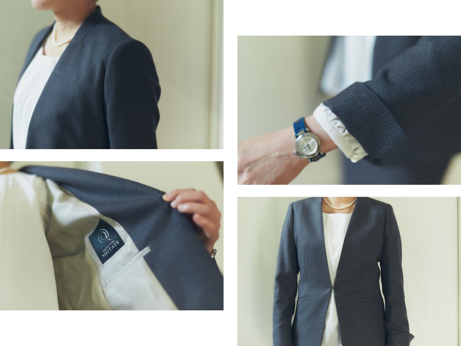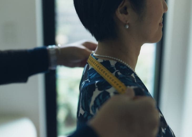 プレゼンやミーティングなど、人前に出て話をする機会も多いので「SHITATE」を通じてスーツが増えるのはありがたいことです。仕立てていただくにあたり、移動する際にシワになりにくく、快適なものを選ぶようにしました。公の場でも海外の要人たちは案外、フォーマルな装いではないことが多くて…。私もワンピースにジャケットというスタイルが多いのですが、スカートスーツならインナーさえ変えれば、いろいろなクロスコーデができそうで助かります。今回、ジャケットにダーツを入れてもらって少しくびれをつけることで、全体のシルエットが柔らかい印象になりました。裏地はアースカラーのグレージュをチョイス。細かなところでいろいろとアドバイスしてもらいながら、選べたのは楽しかったです。