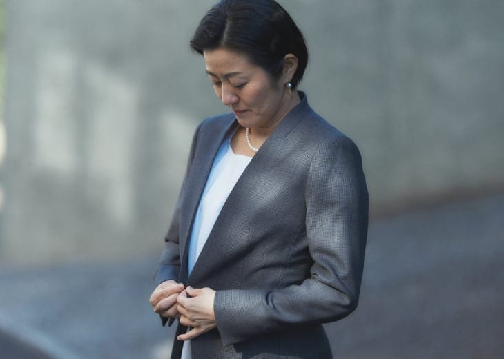 基本的に紺色が好きなので、スーツだけでなく、普段の洋服も無意識のうちに紺色を選ぶことが多いですね。以前、カラー診断をしてもらったときに紺色が似合う色であることが判明。そのお墨付きをもらってからは確信を持って選ぶようになりました。オーダースーツは過去に一度だけ仕立てたことが…。議員秘書をしていた時代、友人から「実はそんなに高くないよ」と言われたのでパンツスーツを仕立てました。でもパンツの場合には身体のラインがはっきりと出ます。ストレッチがかかっていない生地で仕立てると、シルエットは確かにキレイ。でも年齢を重ねていくと身体のラインが気になるのですよね。ですからせっかく仕立てていただいたのにあまり着ていません。今回はそのことも考慮して、少しゆとりを持って仕立てていただくことにしました。