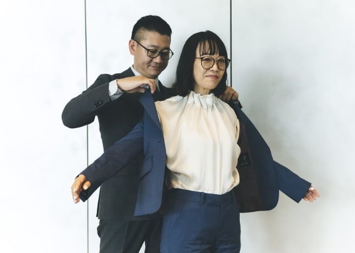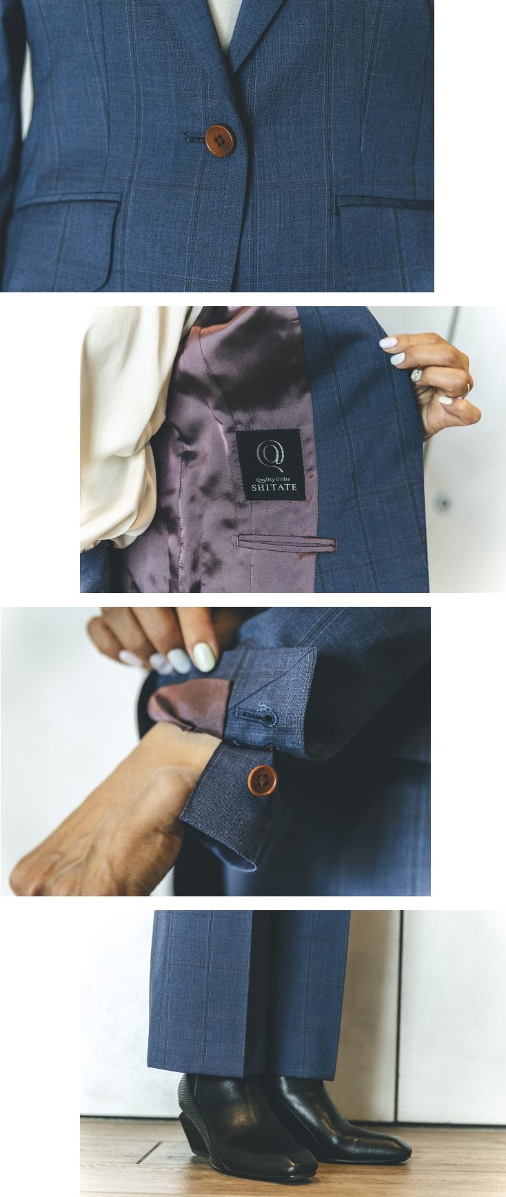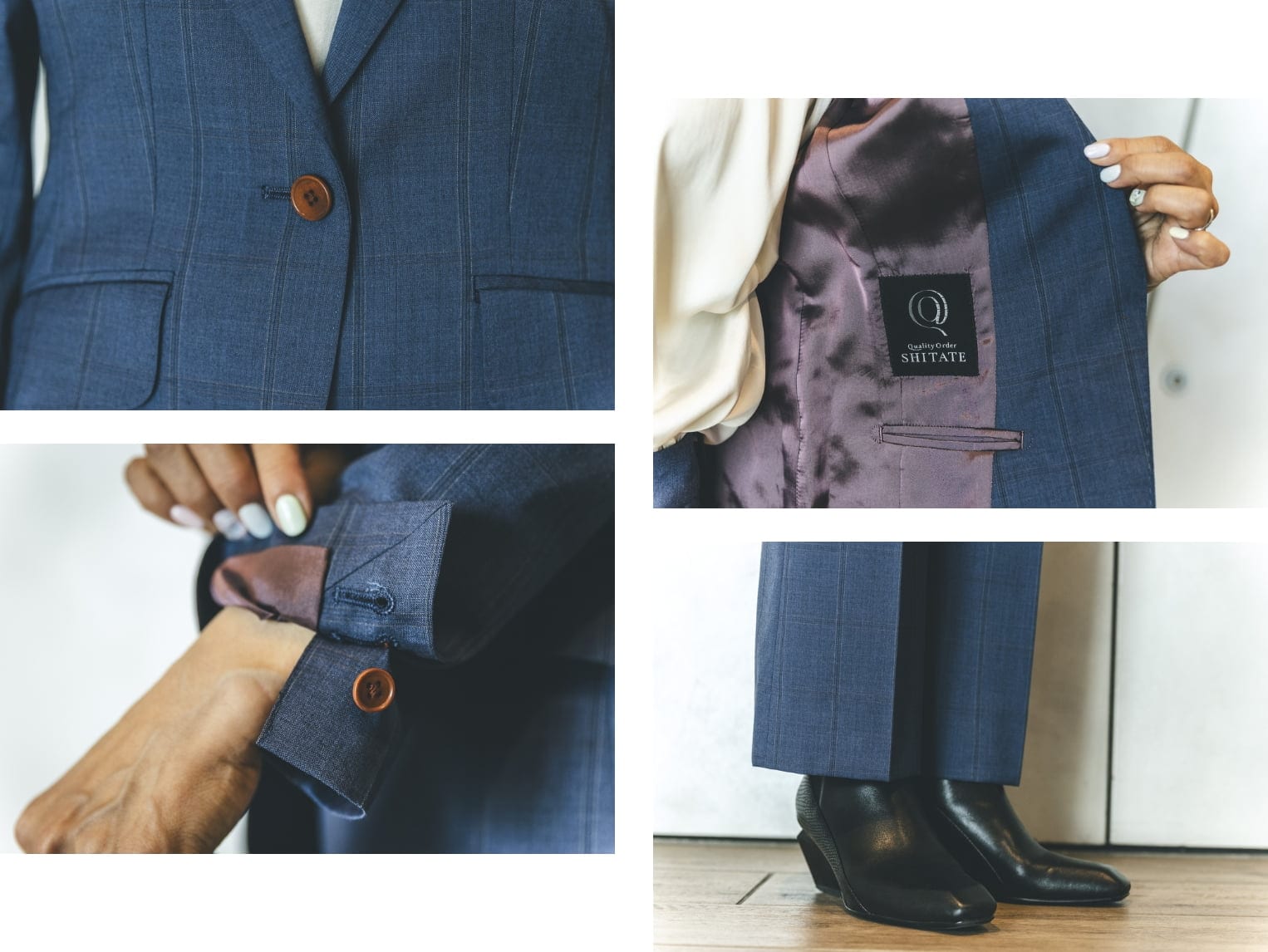 いつもはカジュアルなのでスーツを着ていけば、ちょっと新しい自分を見せられるかもしれませんから。ちなみに海外でオーダースーツを作ったことがあり、色や素材、形を相談しながら選び、仕立てられたスーツが手元に届いたときにとても感動した記憶があります。また、最近では夫がかなり身長が高いということもあり、合うスーツがなかなかないので誕生日祝いにオーダースーツを作りに行ったところ、本人がとても喜んでいたのを見たときにはとてもうれしかったです。オーダースーツは自分だけの唯一無二のものなので、さらに服を大事にするという気持ちも強くなるのではないでしょうか。自分で私らしいものを選びながら作った「SHITATE」スーツ、どういう風にできるか楽しみです。
