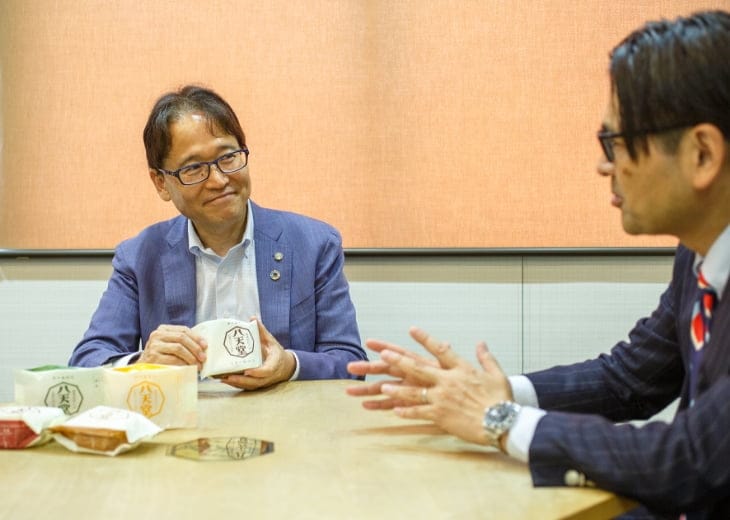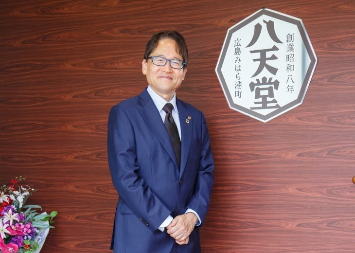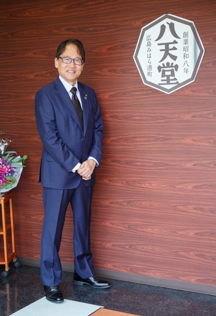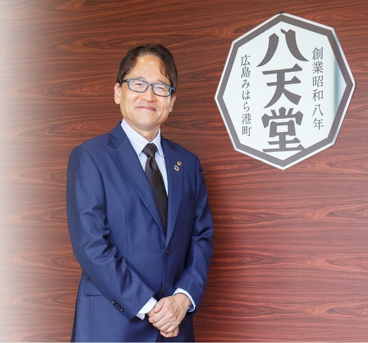 八天堂は、昭和8年に広島県三原市で和菓子屋として創業し、91周年を迎えました。長い歴史のなかで和菓子屋から和洋菓子屋へと変化し、私が3代目として受け継いでパン屋へと時代に応じて業態を変化させてきました。現在は、冷やして食べる「くりーむパン」をはじめとする多様な商品を開発・製造し、全国のみならず海外へとお届けしています。「くりーむパン」は2008年に誕生した新しいスイーツパンで、駅ナカや百貨店を中心にスイーツパンの手土産市場を確立。アライアンスやコラボレーションで事業を拡大し、現在は国内に20店舗、海外3カ国に常設店舗を展開しています。