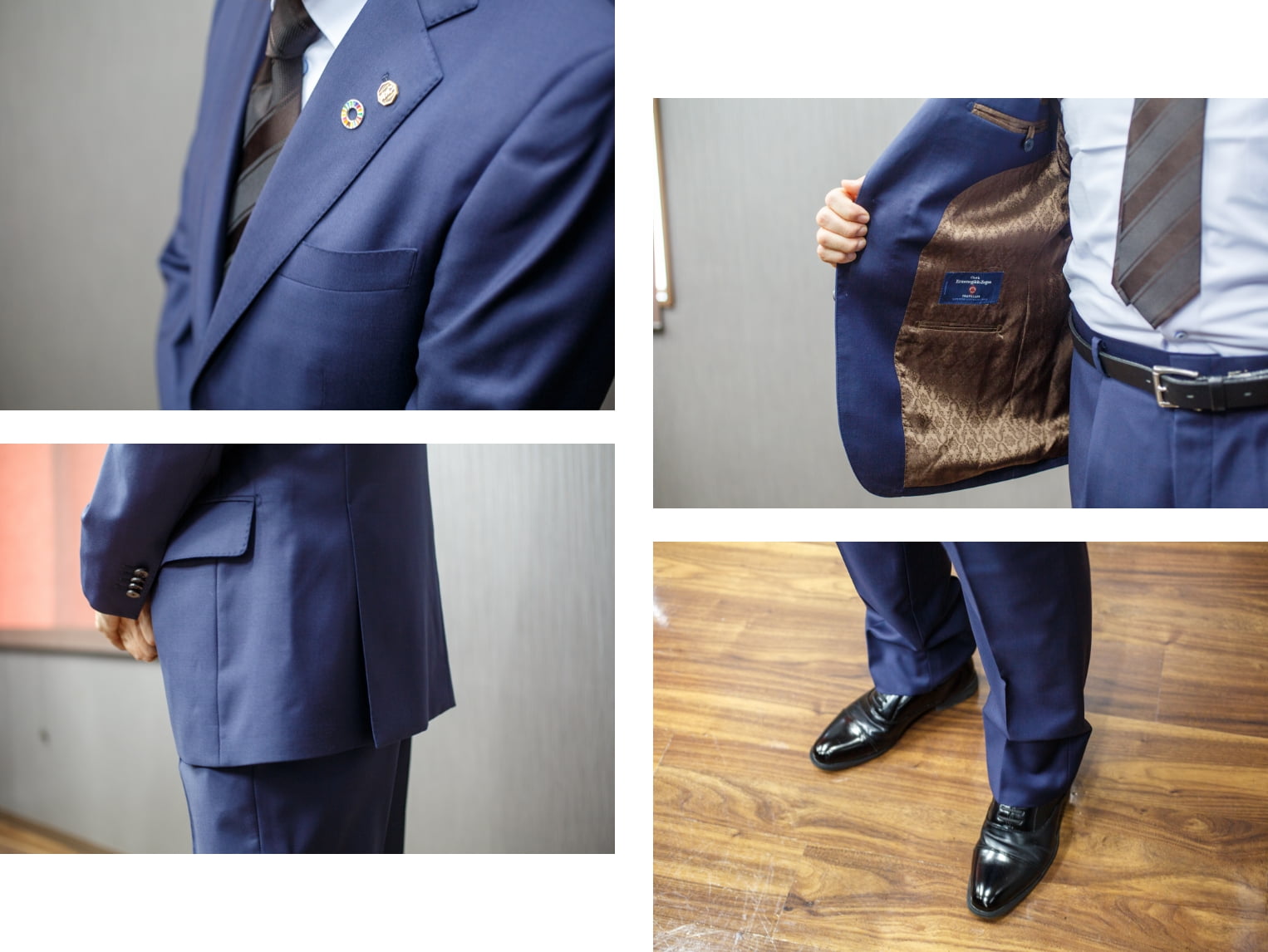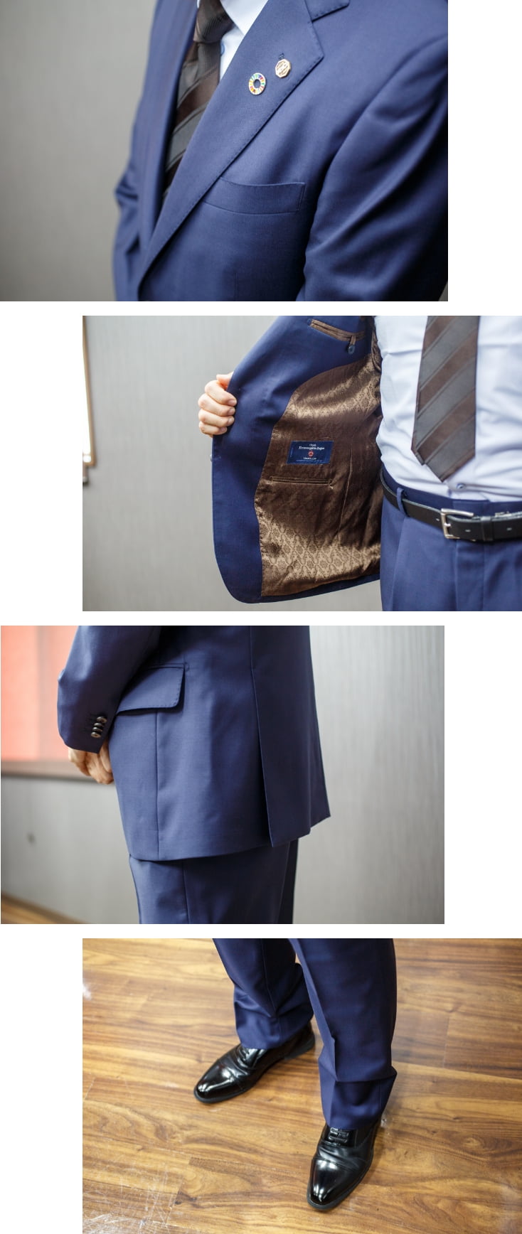 着心地が抜群にいいです!採寸時に、細かい部分までしっかり見ていただき、ぴったりサイズに仕上げてもらいました。最初は可動域が狭いかなと思いましたが、ストレッチが効いていて、とても動きやすいです。自然な光沢感がある生地も非常に良いですね。自分の体型に合ったものは、既製スーツと比べて着心地がとても良く、やはり違いを強く感じました。また、丁寧な接客にも大変感動しました。世の中を見ても、オーダースタイルが増えている印象があります。これからも、自分に合ったオーダースーツを楽しみたいと思います。