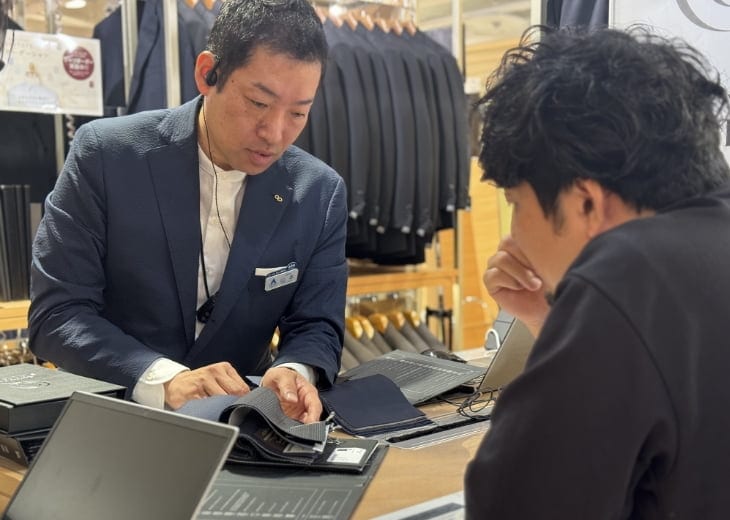 今回、初めて「SHITATE」を利用してみましたが、とにかくオーダーしているときが楽しかったです。ふだん、オーダースーツの担当者がいるわけではないのもあって、名古屋の栄本店の山本上席店長に対応していただき、いろいろとアドバイスを聞けたのは良い体験でした。もともと自分自身、“職人さん”が好きなのですが、山本さんはまさに職人かたぎでした。こんなに魅力あふれる店長さんがいるなら、日本中を出張で飛び回っていたとしても、名古屋へ行ったときには「栄本店で仕立てたい」という気持ちになりました。山本さんは購入する者の立場から、一緒に「どの生地がいいのか、どういうスタイルがいいのか?」などを熱心に考えてくださった。大変感動しました。