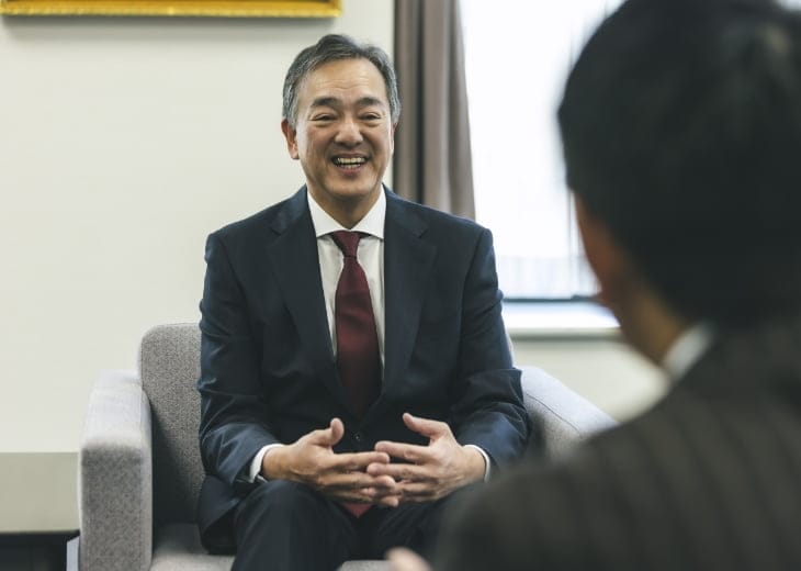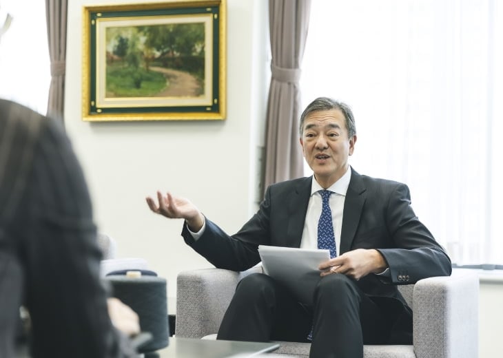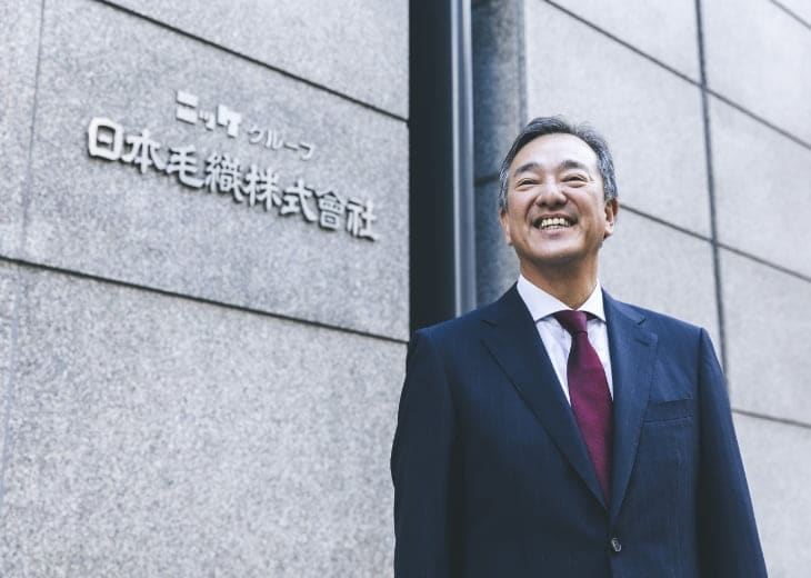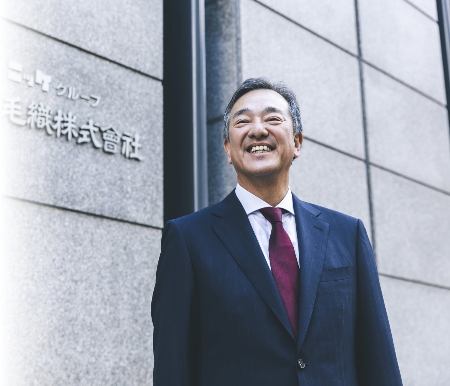 私ども日本毛織株式会社(通称ニッケ)は1896年に創業しました。私は2022年に代表に就任し、現在は「RN(リニューアル・ニッケ)130ビジョン」の第3次中期経営計画に沿って事業を進めているところです。おかげさまで2024年度はニッケと62のグループ会社がそれぞれの強みを発揮し補完し合うことで、過去最高の営業利益・当期純利益を計上させていただきました。