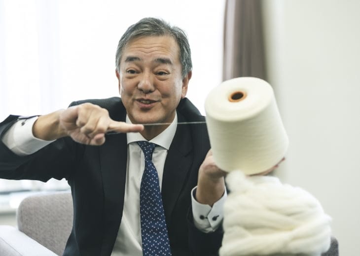 日本毛織は、繊維事業から始まった会社です。繊維のビジネスというのは地味で、私自身、入社以来、35年間、工場で勤め、モノづくりに突き進んできました。当社の代表的な製品であるウールは、天然素材です。化学繊維と違って丁寧に向き合わないと、高品質のものは作れません。化学繊維は太さや長さが均一ですが、ウールにはばらつきがあります。