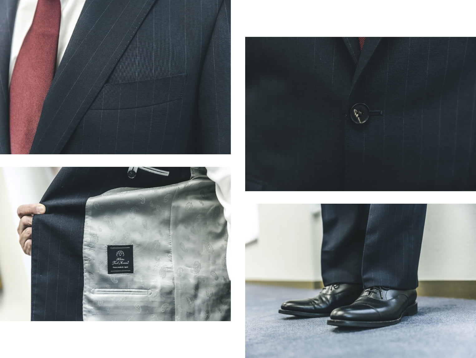 今回仕立てていただくときには、着ていて軽く暖かいものがほしかったんです。実は私は、上背があるので既製のスーツであまり合うものがなく困ることも。ですから「SHITATE」でスーツを作るのは楽しみでしたね。細いストライプのスーツがほしくて、今回、この生地を選ばせていただきました。本当にしなやかで着心地がいい。それに色も落ち着いた感じで気に入りました。