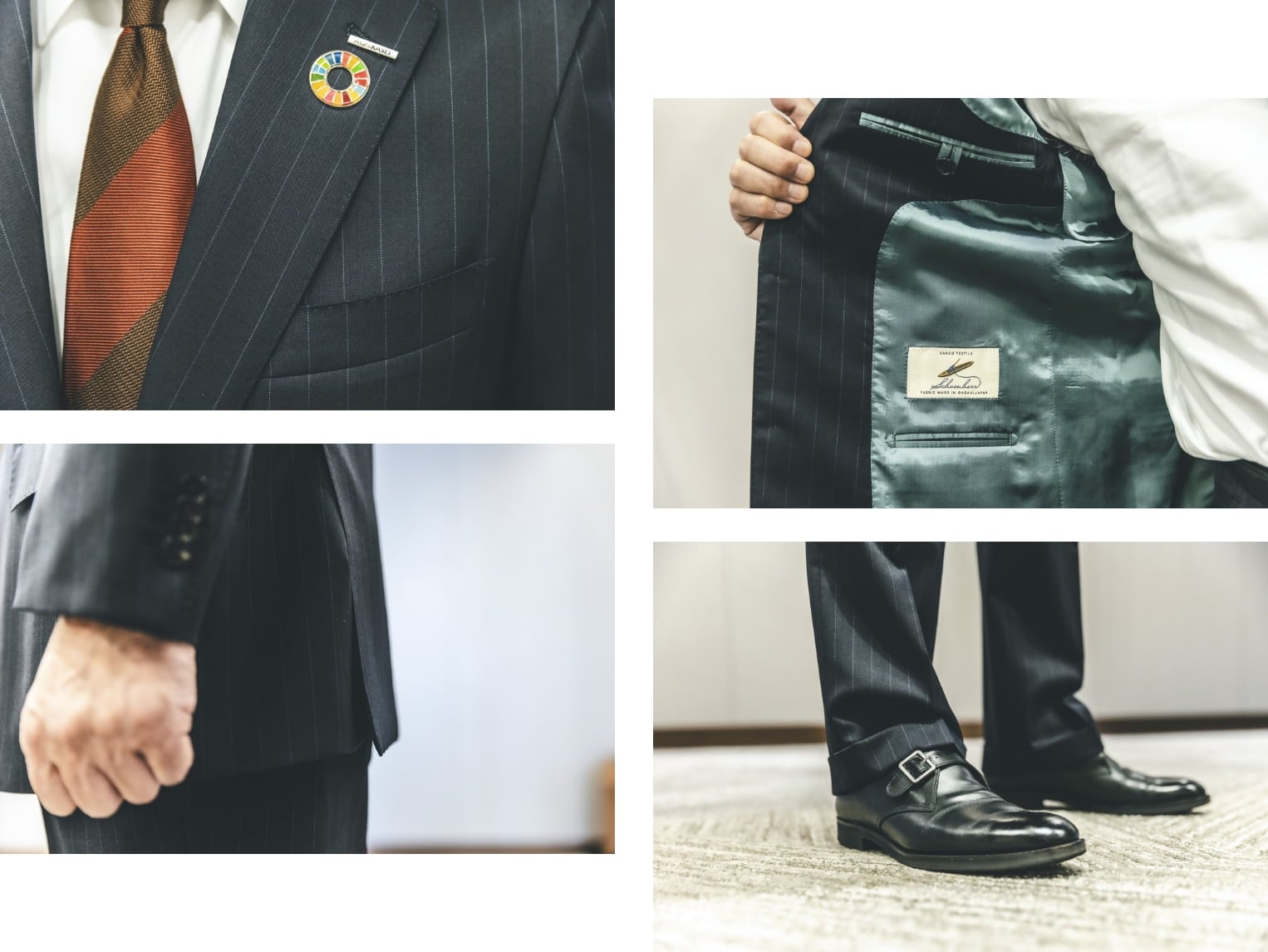 他の人よりもスーツのことを考え、頑張っている、気にしているということはありません。ただ繊維のビジネスに長く携わったので、いろいろなアパレルメーカーさんとのお付き合いもありましたし、展示会に足を運んだりもしました。そうすると、皆さん、やはりきちんとされている。そうした姿を見ると、気分がいいですよね。それにシンプルにきちんとした格好の人は輝いて見えるじゃないですか。会う人のなかには初対面の人もいれば、2回目の人もいるし、もちろん何度も会う人もいます。でもスーツを着て、きちんとしているだけでキラッと光って見える。決まって見えるわけですから、そのほうがいい、と自然と思うようになりました。