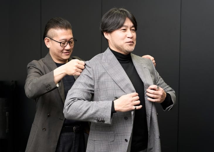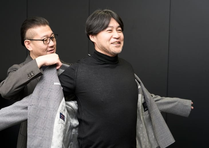 ちなみにこれまでは既製品のスーツを選んで購入していました。でもサイズが微妙に合っていなかったせいでしょうか、スタイリストから「似合っていない」と言われてショックを受けたことも。でも採寸してもらって作ったスーツなら、自分の体にしっかりとフィットするでしょうし、印象が変わるのではと期待しています。普段、カジュアルな服装だからこそ、スーツを着ると周囲に新鮮な印象を与えられるのも魅力の一つ。年相応の装いができるだけでなく、フォーマルな場にふさわしい雰囲気がつくれる。それに普段とは違うスタイルを見せることで、ギャップを楽しむことができるのもスーツならではの面白さかもしれません。