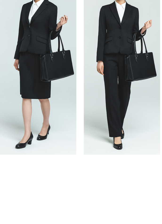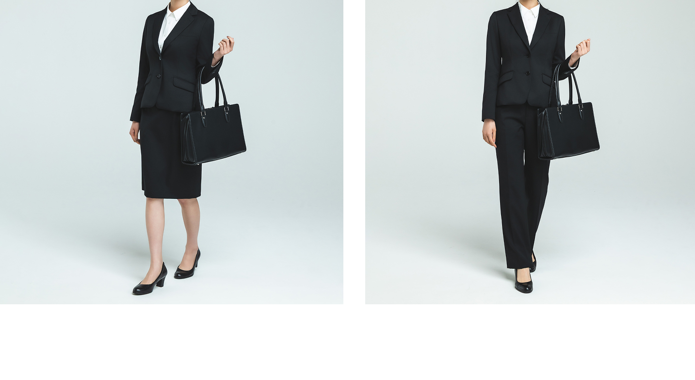 パンツスタイルもスカートスタイルもどちらも好まれています。パンツスーツはすっきりとしたラインで、知的でシャープな印象を与えやすく、凛とした雰囲気に、スカートスーツは柔らかく上品な印象があり、華やかな場にもよくなじみます。