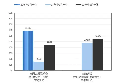 卒業前年度の2月時点で、2人に1人以上の学生は合同説明会に参加していることがわかります。