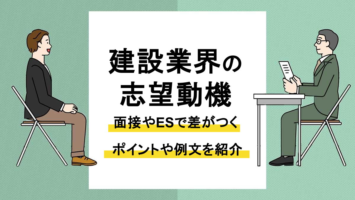 この記事では、建設業界への就活を目指す学生に向けて、志望動機を作成する際のポイントや注意点などを詳しく解説しています。職種ごとの例文も複数紹介していますので、志望動機を考える際の参考にしてみてください。