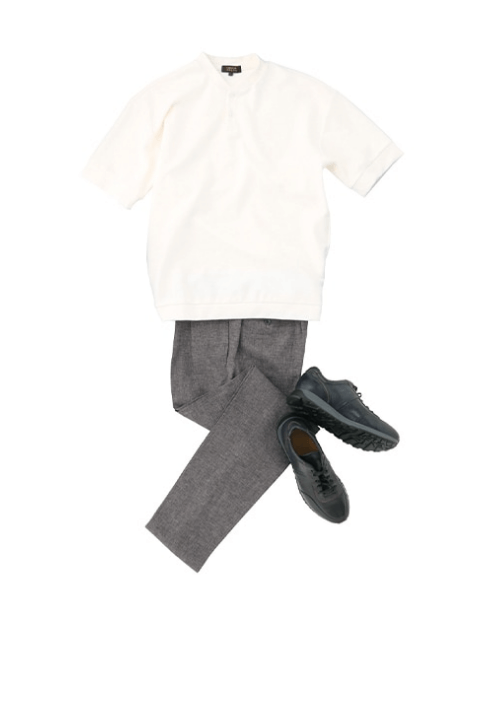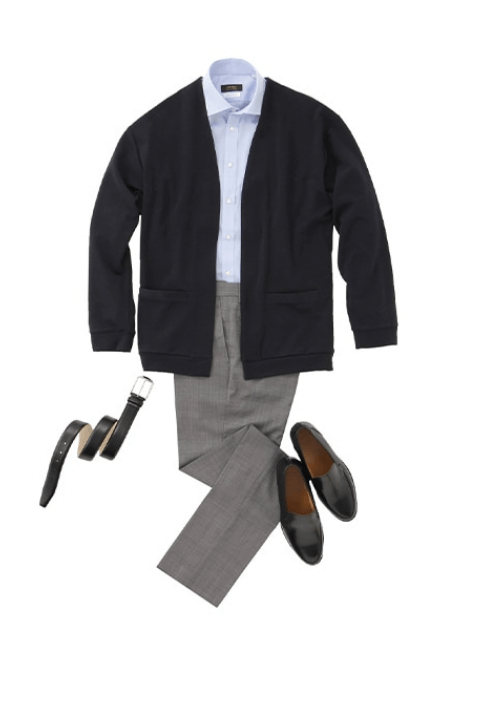 有适度的正式度提升点·代替夹克与开衫等叠穿,提升正式感。·针织衫<衬衫提升正式感·棉质休闲裤<羊毛裤提升正式感·运动鞋<皮鞋提升正式感