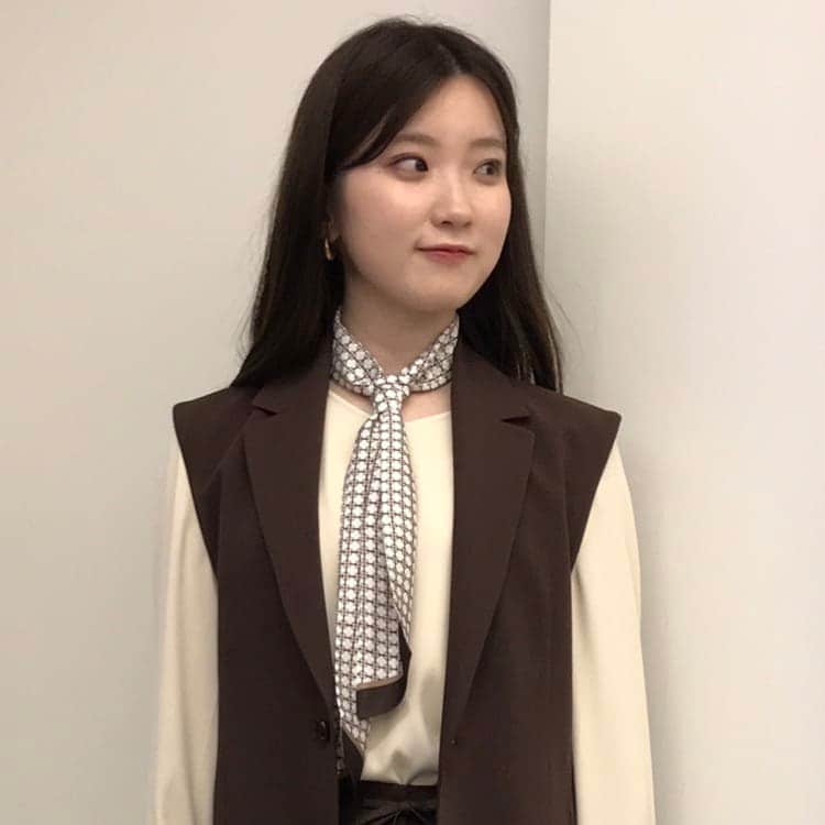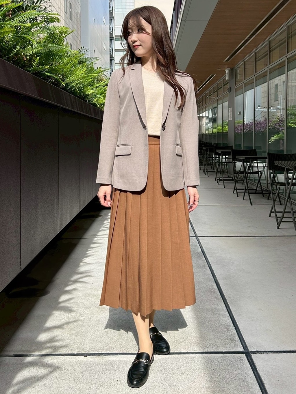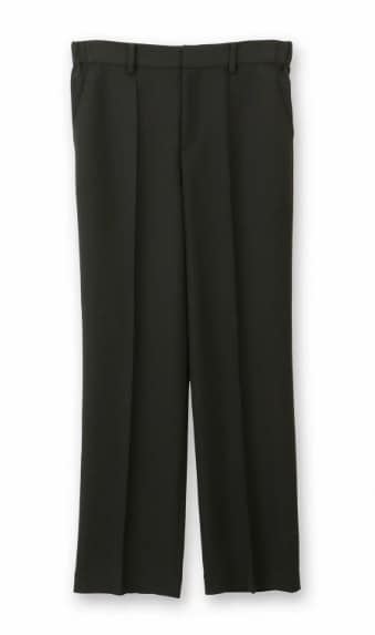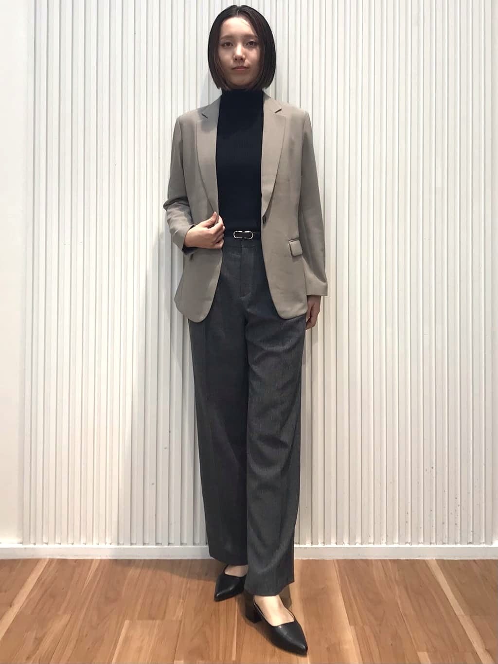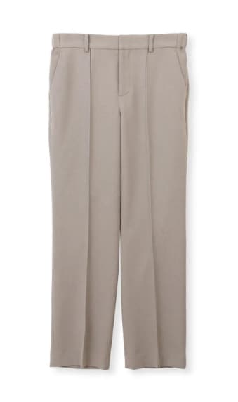 中央細褶設計的直筒褲讓雙腿更顯修長美麗。與夾克搭配,更能襯托出全身的輪廓。
