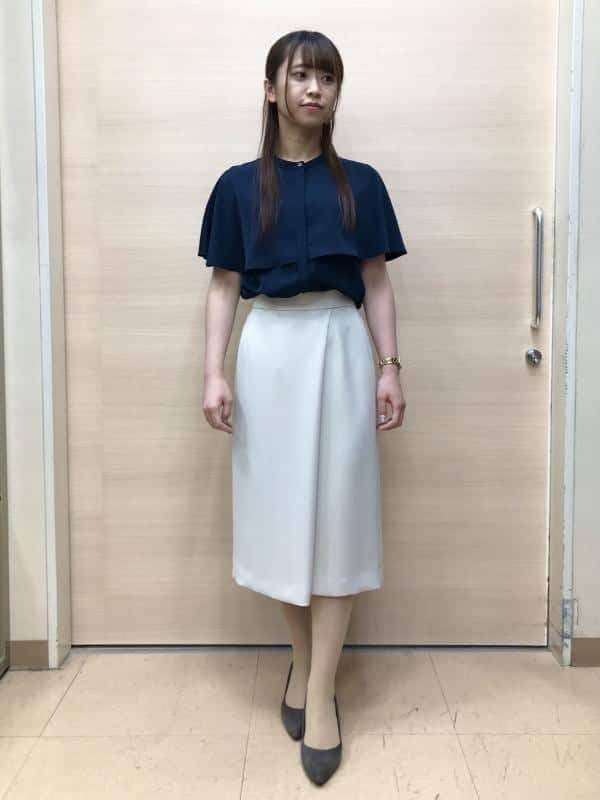 オフィスカジュアルで重宝する、黒ブラウスのトップスを使用したコーディネートもご紹介しましょう。