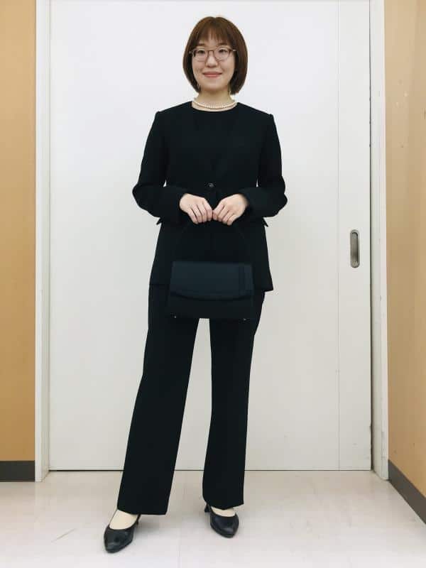 最後に、喪服として着用できるレディースパンツのおすすめコーデをご紹介します。喪服のパンツスーツ選びに迷っている方は参考にしてください。