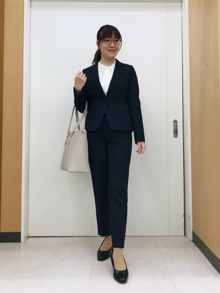 ジャケット・インナー・パンツの3点セットです。足捌きがしやすくスタイルがよく見えるデザインとなっているため、新社会人にもぴったり。若々しさを損なわずにフォーマルな場面に幅広く使えるスーツです。寒い時期にはウールのコートと合わせてもお使いいただけます。