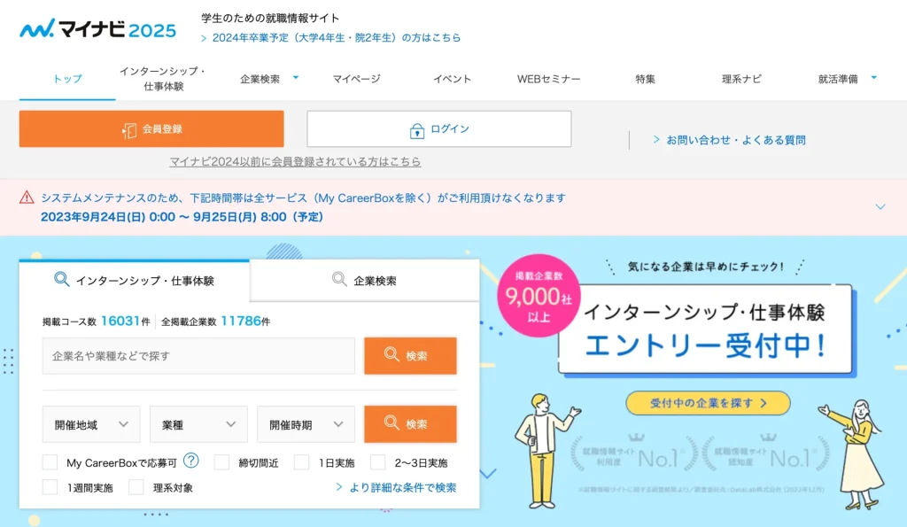 マイナビ:就活イベントから多数の企業情報まで幅広く役立つ