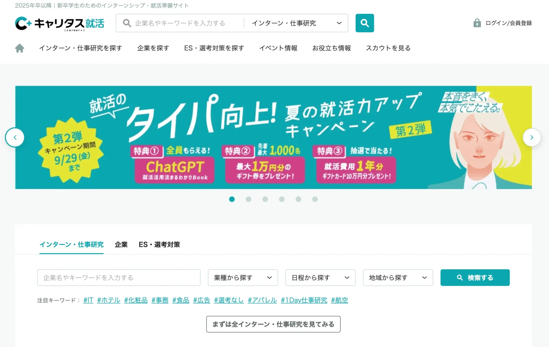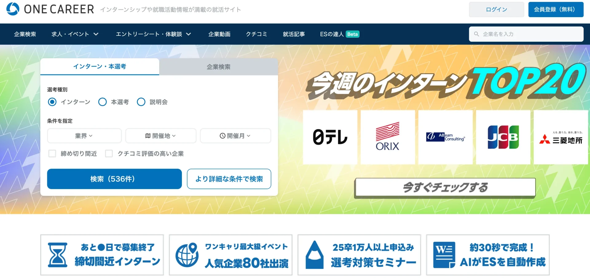 イベント情報や採用情報、インターンシップの詳細などの情報を網羅的に調べることが可能です。